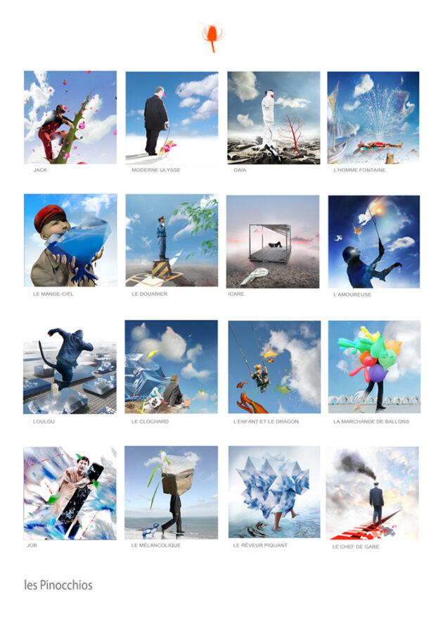 La série Les Pinocchios fait appel de maintes façons aux possibilités ouvertes par les techniques numériques, qu’il maitrise parfaitement. Mais cela seul ne serait pas suffisant. Philippe Chardon joint à cette maîtrise technique l’expression d’un imaginaire très personnel, et une audacieuse mise en contact de toutes formes d’éléments graphiques et photographiques.